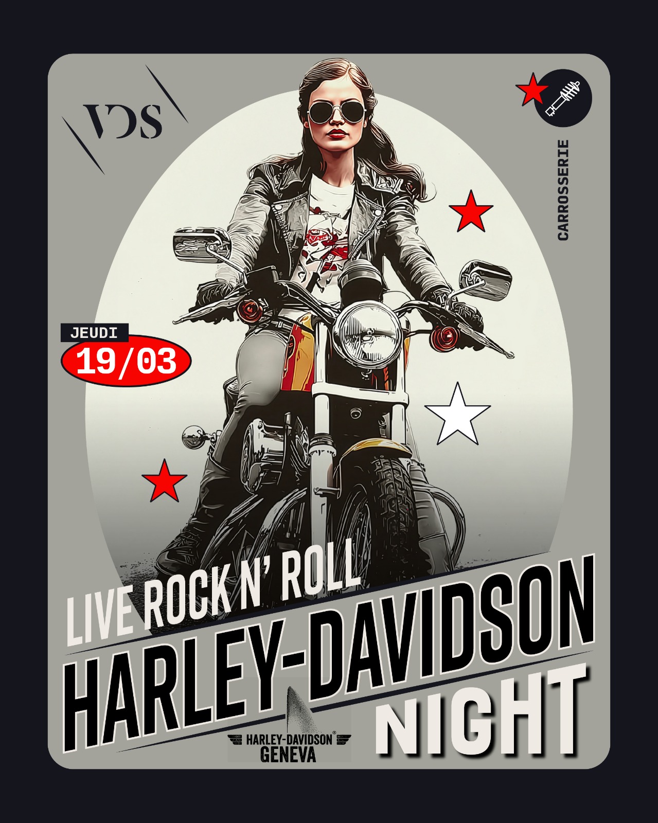 Concert Live avec le groupe BIG BALLS, exposition de motos, 1 boisson offerte, présence de membres du staff HARLEY-DAVIDSON GENEVA, une soirée à ne manquer sous aucun prétexte.